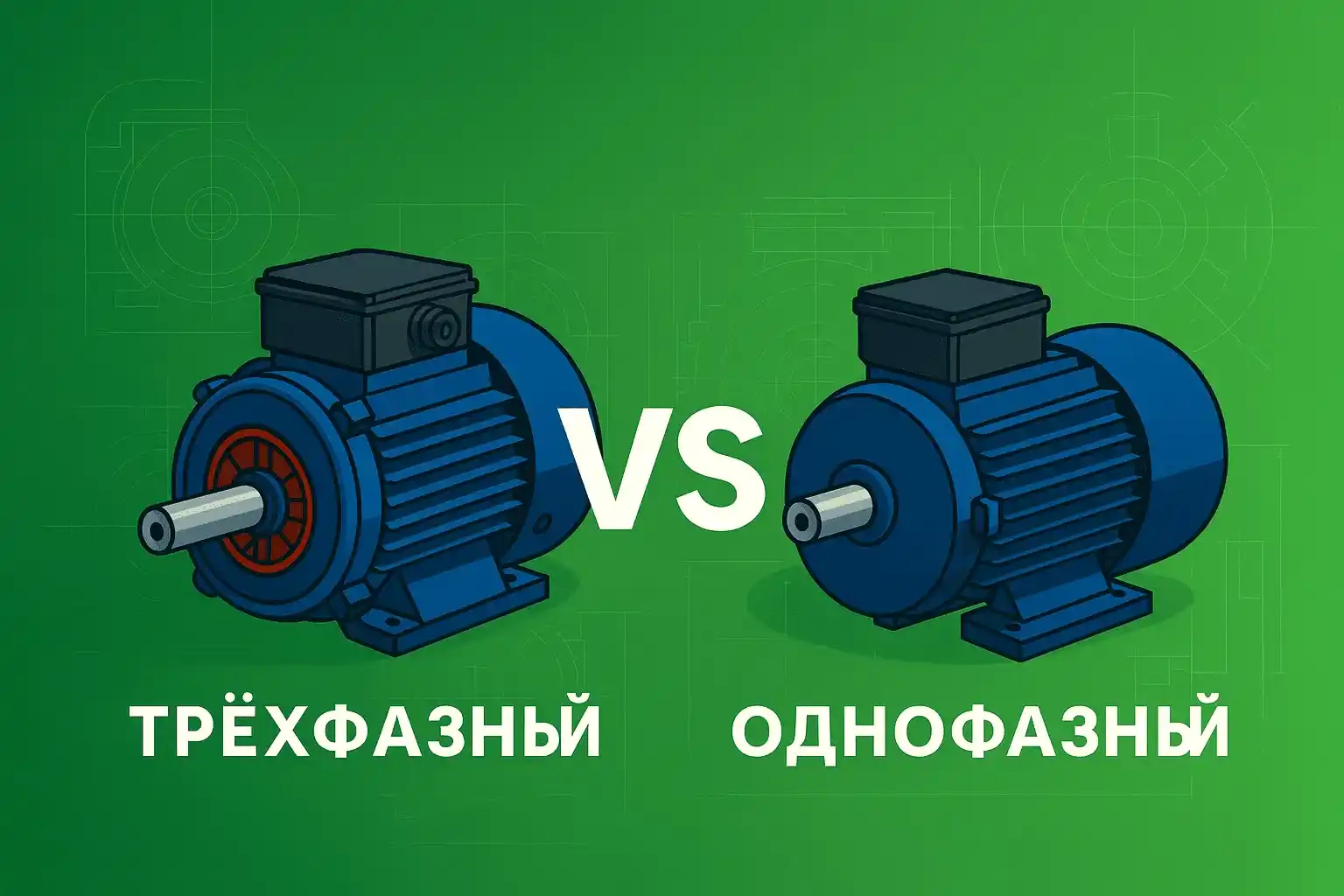 Сравнение однофазных и трёхфазных электродвигателей