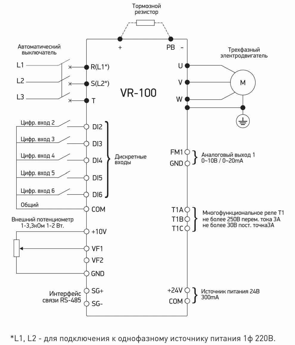 3-фазный преобразователь частоты VR100-0075Т4B 0.75 кВт 380В