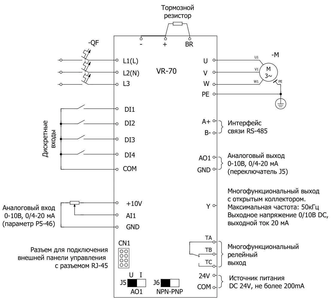 Преобразователь частоты VR70-015S2B предназначен для установки в промышленных условиях: